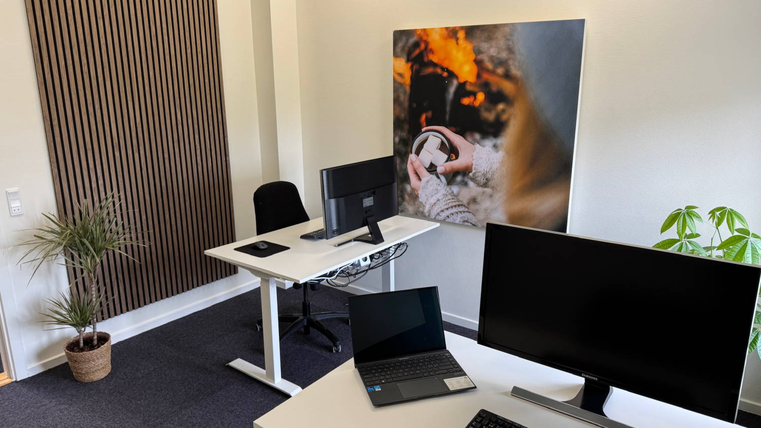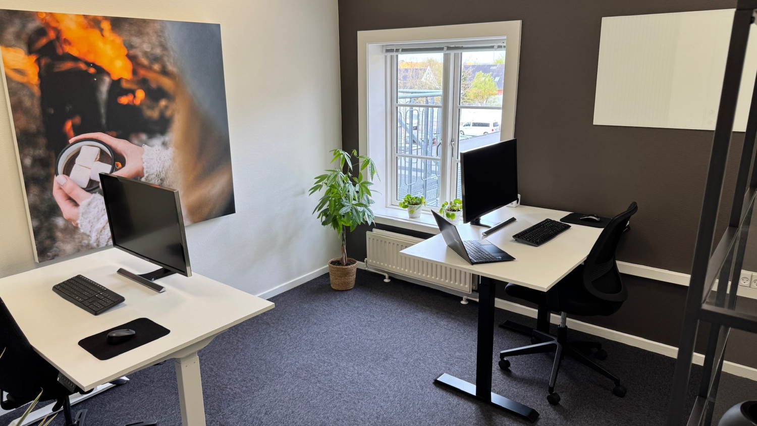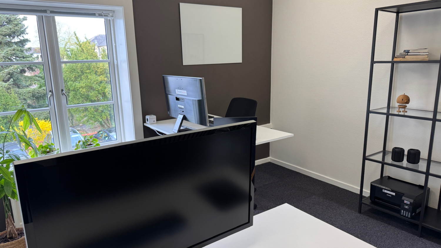 Kontoret er nyistandsat og parat til dig og din kollega, der både vil være en del af vores fællesskab, hvor I deltager i den “summen”, som opstår, når man arbejder sammen – men samtidig også har muligheden for at lukke døren og få arbejdsro, når det er nødvendigt.