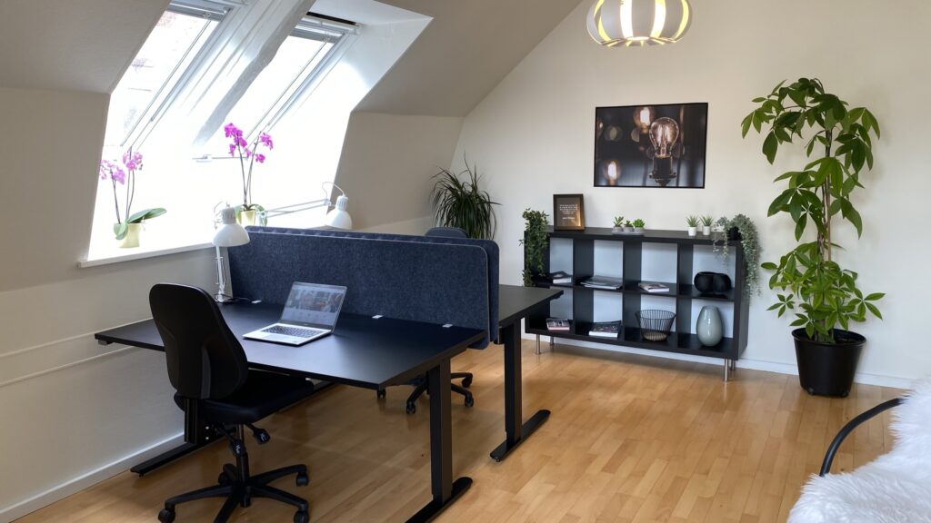 Fra kontoret er der nem adgang til to mødelokaler i kælderen, et videostudie samt et podcaststudie, som også kan bruges som “telefonboks”. Derudover er der få skridt til bygningen “Business Hub”, hvor vi har vores kursuslokale. I Hovedbygningen er der endnu et mødelokale, Lounge og Café. I Loungen kan du og dine kollegaer spise frokost sammen med de øvrige virksomheder i BusinessHouse.