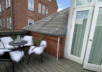 Dette kontor er skabt til arkitekter, konsulenter eller andre, der sætter pris på skønne omgivelser. Med adgang direkte fra Jernbanegade, kan du og dine kolleger få en fantastisk base i dette skønne bykontor på 1. sal. Her er højt til loftet, enkelte skråvægge, råhvide vægge samt flot trægulv – og som ekstra bonus: Jeres helt egen altan, hvor pauserne kan nydes, når vejret tillader det.